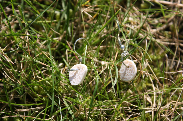 I even tried to make pearls and made a pair of earrings for myself out of them. Next time around I'll look for a tutorial beforehand, on how to make the holes. I made them in the beginning, and one of them isn't quite straight now, so the pearl is a little lopsided (which you don't see on the pictures!). Maybe one makes the holes in the end, or there's a special trick that I don't now.